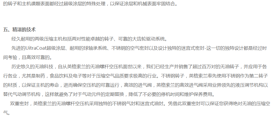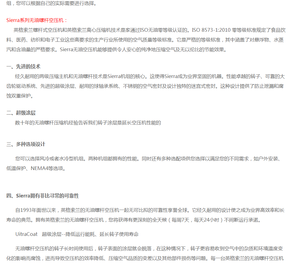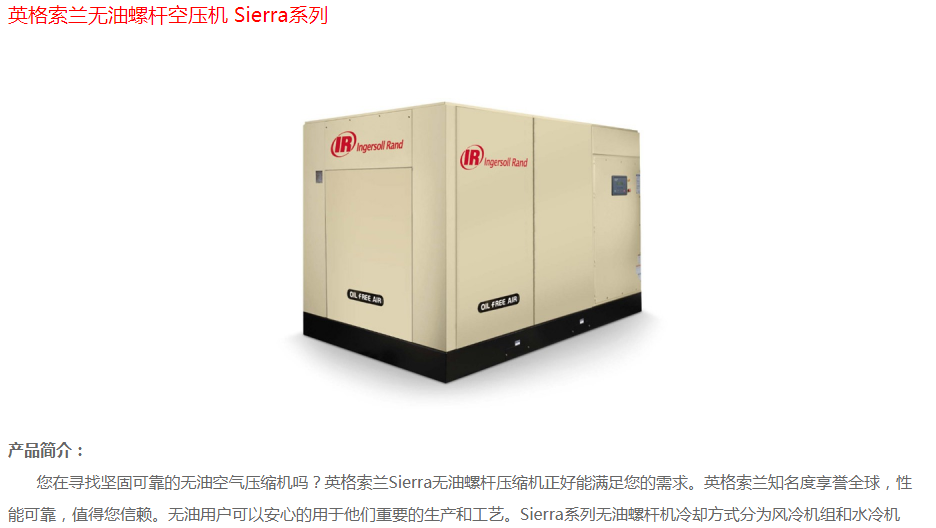 英格索蘭無油螺桿空壓機sierra系列
