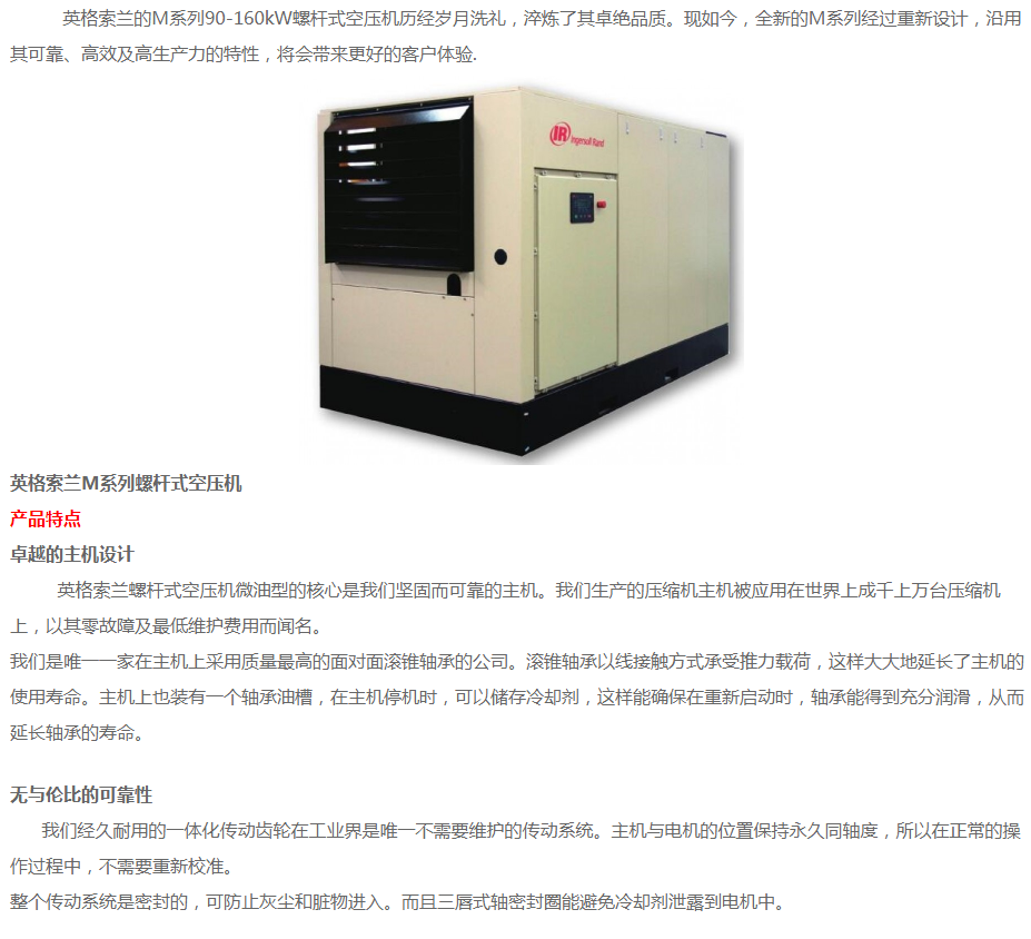 •        濟南銳博特機械設備有限公司是英格索蘭空氣壓縮機的授權代理商,代理銷售美國英格索蘭全系列的空壓機及后續處理設備。公司自成立以來,經過公司全體同仁不斷努力,開拓創新,以優良的技術、完善的售后服務,使得公司贏得了一個又一個的誠心客戶。我公司擁有多名專業的銷售及售后服務人員,為客戶提供空壓系統的售前、售中及售后的全方位優質服務。另公司有多名具有英格索蘭壓縮機授權服務證書的服務工程師,能維修和保養國內外各種品牌空壓機,公司各種國內外品牌空壓機配件庫存齊全。