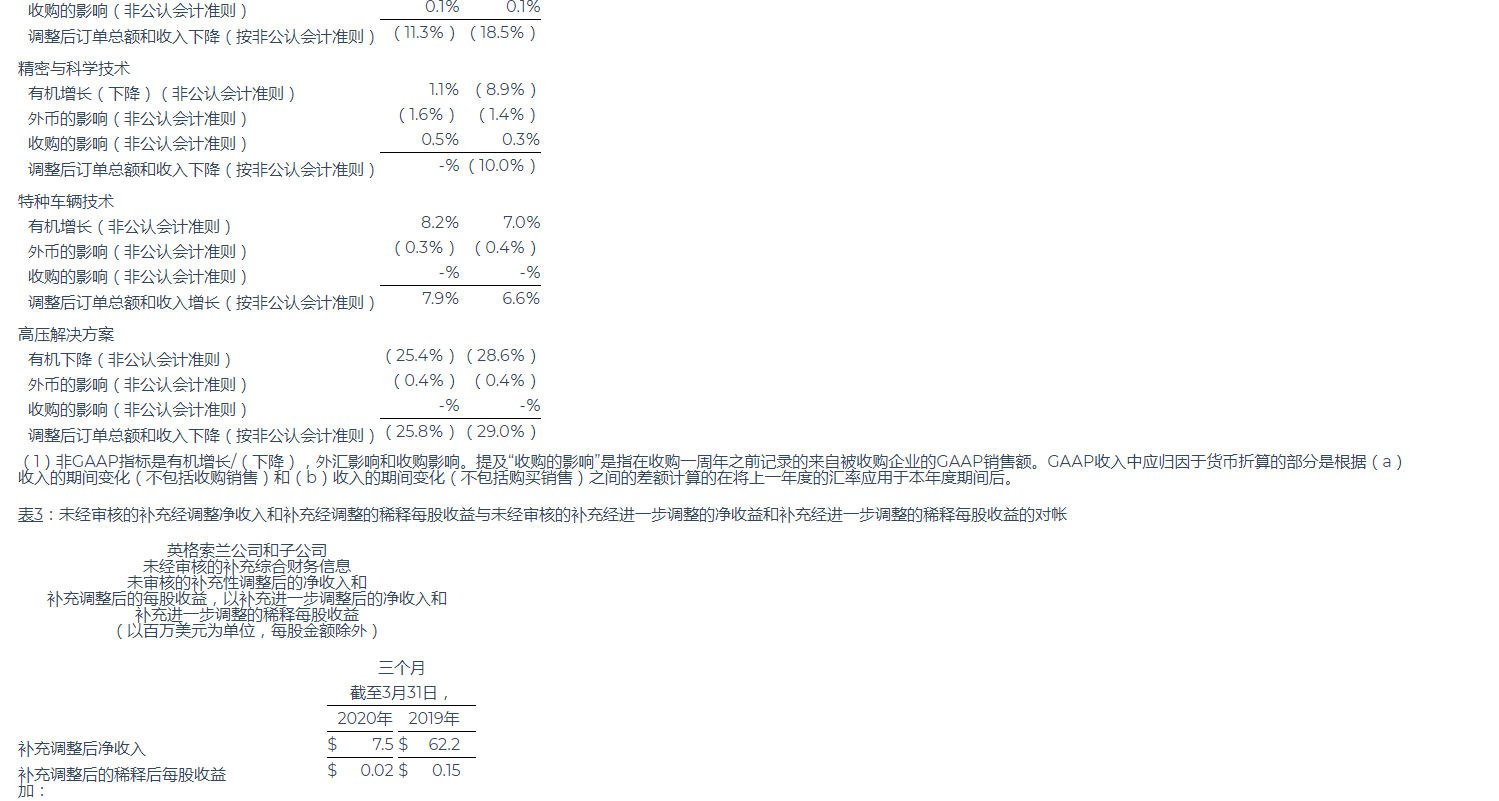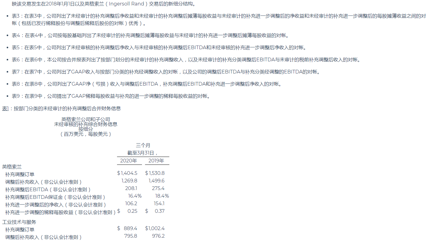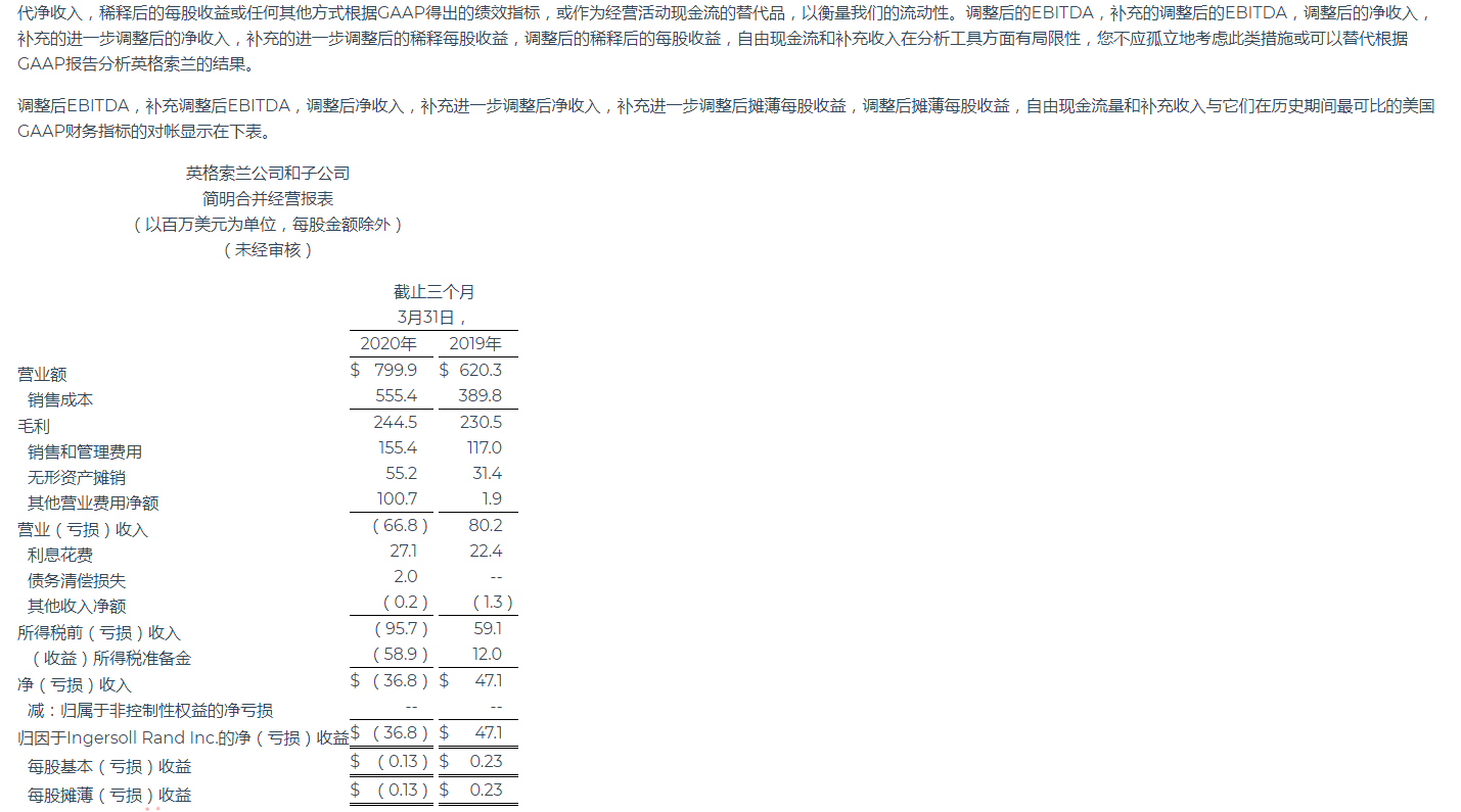 英格索蘭公布2020年第一季度業績