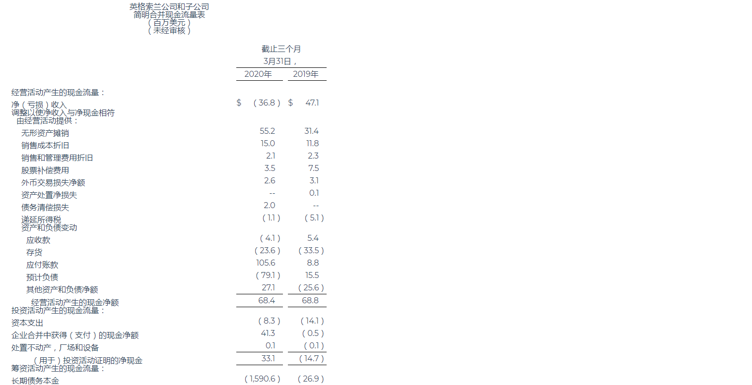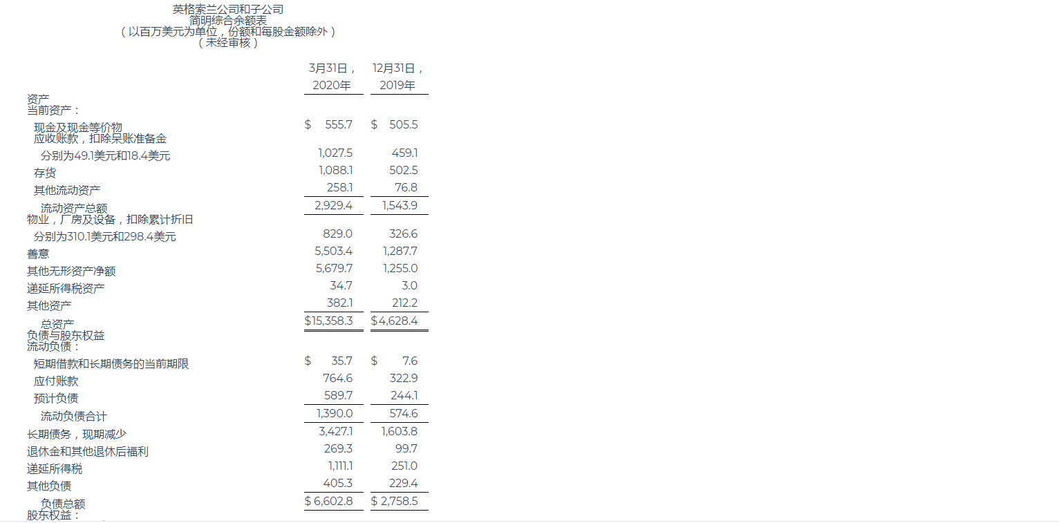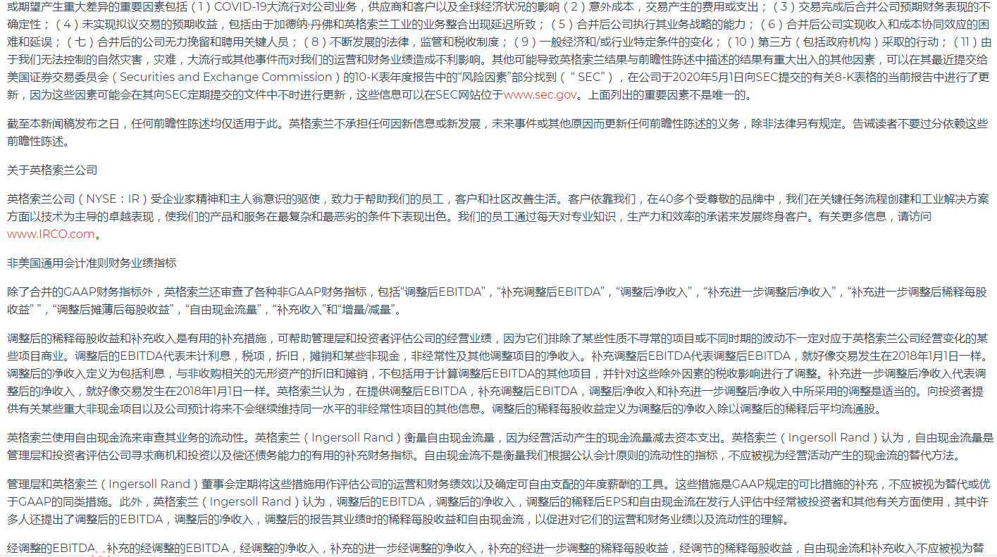 英格索蘭公布2020年第一季度業績